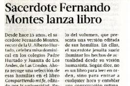 Sacerdote Fernando Montes lanza libro. [artículo] La Tercera de La Hora (Diario : Santiago, Chile)-- abr. 24, 2013, p. 42. .