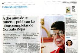 A dos años de su muerte, publican las obras completas de Gonzalo Rojas [artículo] Roberto Careaga C.