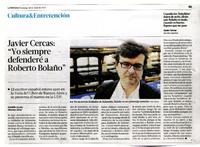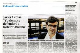 Javier Cercas: "Yo siempre defenderé a Roberto Bolaño" [artículo] Daniela Acosta.