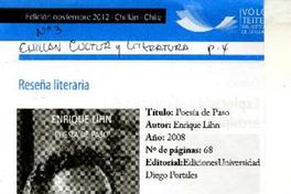 Poesía de paso. [artículo] Chillán Cultura & Literatura (Revista : Chile)-- Nº3 (noviembre, 2012) p. 4. .