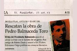 Rescatan la obra de Pedro Balmaceda Toro [artículo] / Sara Bertrand. El Mercurio (Diario : Santiago, Chile)-- abr. 22, 2013, p. A11. .