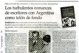 Los turbulentos romances de escritores con Argentina como telón de fondo [artículo] / Constanza Rojas Valdés. El Mercurio (Diario : Santiago, Chile) abr. 28, 2013, p. A14. .
