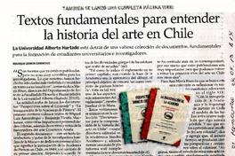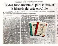 Textos fundamentales para entender la historia del arte en Chile [artículo] / Maureen Lennon Zaninovic. El Mercurio (Diario : Santiago, Chile)-- abr. 24, 2013, p. A14. .