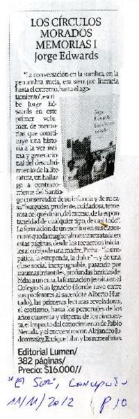 Los círculos morados memorias I Jorge Edwards. [artículo]. El Sur (Diario : Concepción, Chile)-- nov. 11, 2012, p. 10. .