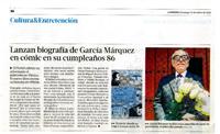 Lanzan biografía de García Márquez en cómic en su cumpleaños 86. [artículo] La Tercera de La Hora (Diario : Santiago, Chile)-- mar. 10, 2013, p. 56. .