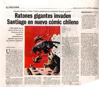Ratones gigantes invaden Santiago en nuevo cómic chileno [artículo] / Rodrigo Castillo. Las Últimas Noticias (Diario : Santiago, Chile)-- mar. 9, 2013, p. 42. .