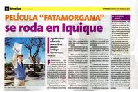 Película "Fatamorgana" se roda en Iquique [artículo] / La Estrella (Diario : Iquique, Chile)-- mar. 30, 2013, p. 23 .