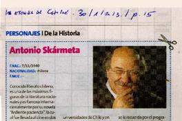 Antonio Skármeta [artículo] / La Estrella (Diario : Iquique, Chile)-- ene. 30, 2013, p. 15 .