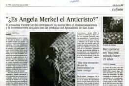 "¿Es Angela Merkel el Anticristo?". El ensayista Vicente Verdú contrasta en su nuevo libro el desmoronamiento y la incertidumbre actuales con las profesías del Apocalipsis de San Juan [artículo] El País (Diario : Madrid, España)-- ene. 8, 2013, p. 31 .