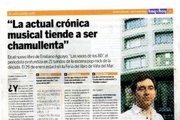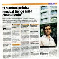 "La actual crónica musical tiende a ser chamullenta" [artículo] / Emilio Contreras M. Hoy X Hoy (Diario : Santiago, Chile)-- ene. 9, 2013, p. 15 .