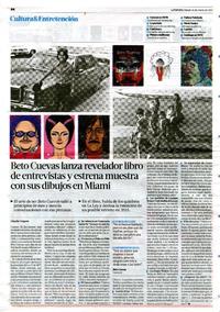 Beto Cuevas lanza revelador libro de entrevistas y estrena muestra con sus dibujos en Miami [artículo] / Claudio Vergara. La Tercera de la Hora (Diario: Santiago, Chile)-- mar. 16, 2013, p. 94. .