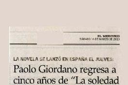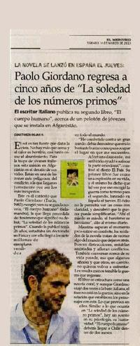 Paolo Giordano regresa a cinco años de "La soledad de los números primos" [artículo] / Constanza Rojas V. El Mercurio (Diario : Santiago, Chile)-- mar. 16, 2013 p. A18. .