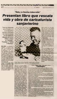 Presentan libro que rescata vida y obra de caricaturista sanjavierino. [artículo] El Centro (Diario : Talca, Chile)-- nov. 22, 2012, p. 25. .