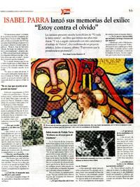 Isabel Parra lanzó sus memorias del exilio: "Estoy contra el olvido" [artículo] / Juan Carlos Ramírez F. La Segunda (Diario : Santiago, Chile)-- mar. 28, 2013, p. 55. .