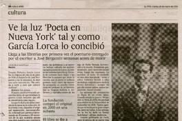 Ve la luz "Poeta en Nueva York" tal y como García Lorca lo concibió [artículo] / Jesús Ruiz Mantilla. El País (Diario : Madrid, España)-- mar. 26, 2013, p. 30-31. .