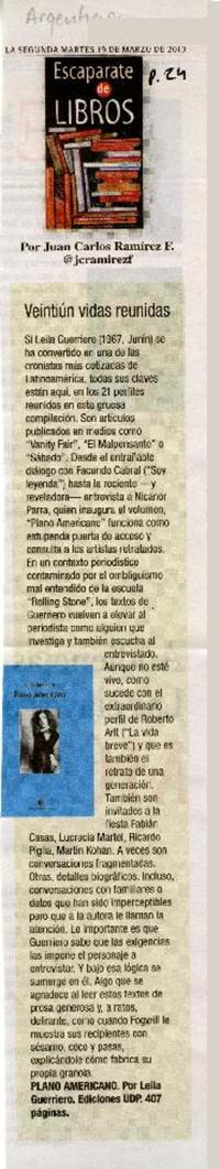 Escaparate de libros : Veintiún vidas reunidas [artículo] Juan Carlos Ramírez F.