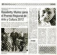 Rosabetty Muñoz gana Premio Regional de Arte y Cultura [artículo]