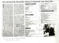 El escritor Ramón Díaz Eterovic en Ancud [artículo] / El Insular (Periódico : Castro, Chile)-- Junio, 2012, p. 12 .