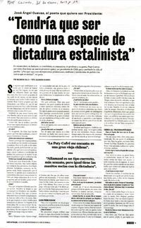 "Tendría que ser como una especie de dictadura estalinista" (entrevista) [artículo] / Macarena Gallo. The Clinic (Diario : Santiago, Chile)-- ene. 31, 2013, p. 19. .