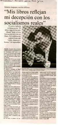 "Mis libros reflejan mi decepción con los socialismos reales" [artículo] / EFE. El Libertador (Diario : Rancagua, Chile)-- nov. 18, 2012, p. 22. .