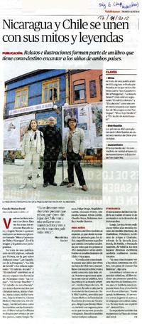 Nicaragua y Chile se unes con sus mitos y leyendas [artículo] / Claudia Muñoz David. Diario Austral (Diario : Valdivia, Chile)-- nov. 17, 2012, p. 6 (suplemento "Austral Letras") .