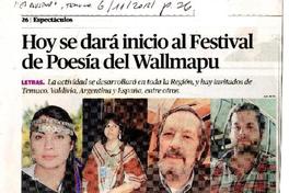 Hoy se dará inicio al festival de poesía del Wallmapu [artículo] Nelson Zapata.