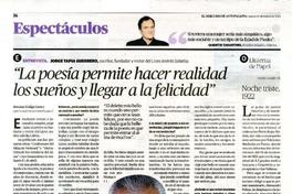 "La poesía permite hacer realidad los sueños y llegar a la felicidad" [artículo] / Romina Zuñiga Castro El Mercurio (Diario : Antofagasta, Chile)-- ene. 17, 2013, p. 26 .
