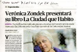 Verónica Zondek presentará su libro la ciudad que habito [artículo] / Claudia Muñoz David. Diario Austral (Diario : Valdivia, Chile)-- nov. 7, 2012, p. 26 .