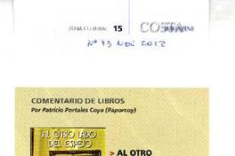 Al otro lado del espejo [artículo] / Patricio Portales Coya. Zona cultural (Revista : Chile)-- no. 43 (nov. 2012), p. 15. .