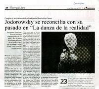 Jodorowsky se reconcilia con su pasado en "la danza de la realidad" [artículo] / EFE. El Libertador (Diario : Rancagua, Chile)-- mayo 20, 2013, p. 24 (suplemento "Tiempo libre") .