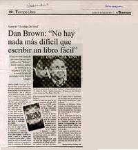 Dan Brown : "no hay nada más difícil que escribir un libro fácil" [artículo] / Mateo Sancho Cardiel. El Libertador (Diario : Rancagua, Chile)-- mayo 16, 2013, p. 22 (suplemento "Tiempo libre") .