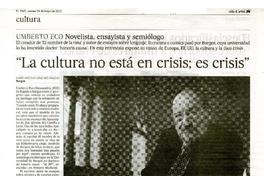 "La cultura no está en crisis; es crisis" [artículo] / María Antonia Sánchez-Vallejo. El País (Diario : Madrid, España)-- mayo 24, 2013, p. 29. .