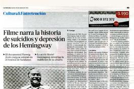 Filme narra la historia de suicidios y depresión de los Hemingway [artículo] R. Careaga.