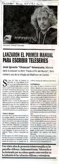 Lanzaron el primer manual para escribir teleseries. [artículo] La Prensa (Diario : Curicó, Chile)-- sept. 25, 2012, p. 2. .