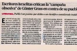 Escritores israelitas critican la "campaña obsesiva" de Günter Grass en contra de su pueblo. [artículo] El Mercurio (Diario : Calama, Chile)-- oct. 01, 2012, p. 16. .