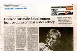 Libro de cartas de John Lennon incluye duras críticas a McCartney. [artículo] La Tercera de la Hora (Diario : Santiago, Chile)-- feb. 06, 2013, p. 39. .