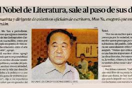 Ganador del Nobel de literatura, sale al paso de sus detractores. [artículo] El Mercurio (Diario : Antofagasta, Chile)-- oct. 13, 2012, p. 24. El Mercurio (Diario : Calama, Chile)-- oct. 13, 2012, p. 30. .