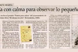 Una poesía con calma para observar lo pequeño [artículo] / Sara Bertrand. El Mercurio (Diario : Santiago, Chile)-- mayo 17, 2013, p. A12. .