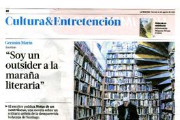 "Soy un outsider a la maraña literaria" [artículo] / Roberto Careaga C. La Tercera (Diario : Santiago, Chile)-- ago. 16, 2013, p. 48. .