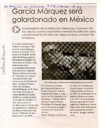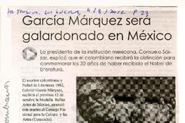 García Márquez será galardonado en México. [artículo] La Tribuna (Diario : Los Angeles, Chile)-- ago. 4, 2012, p. 22. .