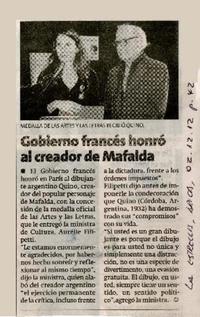 Gobierno francés honró al creador de Mafalda. [artículo]