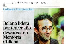 Bolaño lidera por tercer año descargas en Memoria Chilena [artículo] / Roberto Careaga C. La Tercera de la Hora (Diario : Santiago, Chile)-- ene. 26, 2013, p. 90. .