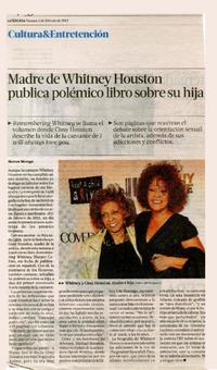Madre de Whitney Houston publica polémico libro sobre su hija [artículo] / Marcos Moraga. La Tercera de la Hora (Diario : Santiago, Chile)-- feb. 1, 2013, p. 55. .