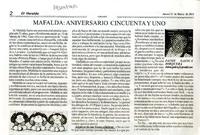 Mafalda: Aniversario cincuenta y uno [artículo] / Jaime Gatica Jorquera. El Heraldo (Diario : Talca, Chile)-- mar. 21, 2013, p. 2. .