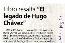 Libro resalta "El legado de Hugo Chavéz". [artículo] El Centro (Diario : Talca, Chile)-- mayo 21, 2013, p. 27. .