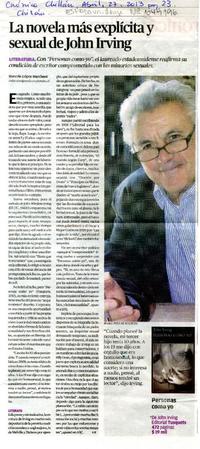 La novela más explícita y sexual de John Irving [artículo] / Marcelo López Marchant. Crónica (Diario : Chillán, Chile)-- abr. 27, 2013, p. 23. .