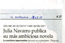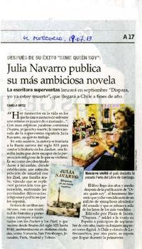 Después de su éxito "Dime quién soy": Julia Navarro publica su más ambiciosa novela [artículo] / Camila Ortiz. El Mercurio (Diario : Santiago, Chile) jul. 19, 2013, p. A17) .