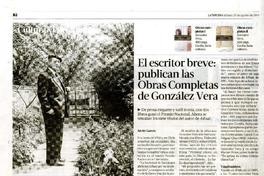 El escritor breve: publican la Obras Completas de González Vera [artículo] Javier García.