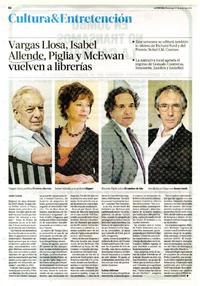 Vargas Llosa, Isabel Allende, Piglia y McEwan vuelven a librerías [artículo] / Javier García. La Tercera (Diario : Santiago, Chile)-- jul. 13, 2013, p. 62. .
