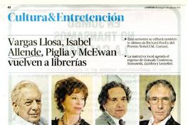 Vargas Llosa, Isabel Allende, Piglia y McEwan vuelven a librerías [artículo] Javier García.